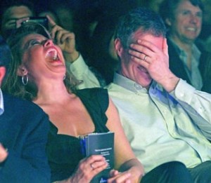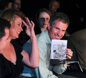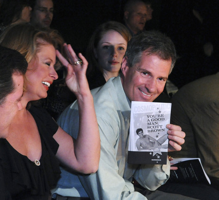 Sen. Scott Brown (R-Crassachusetts) predictably went to see Boston Improv Asylum’s send-up, “You’re a Good Man, Scott Brown.” That earned him, er, Brownie points in the local press, but his Missus – WCVB reporter Gail Huff – didnt fare as well, at least photographically.