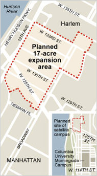 Columbia hopes to build a series of 16 buildings for science, business and the arts over several decades on the site near the Hudson River, where the streets are lined with warehouses, factories and auto repair shops.