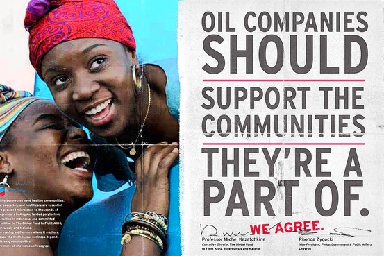 Chevron’s ads, which will run in print, on television and online, will initially target Washington and San Francisco, but will eventually appear throughout the U.S. and overseas.