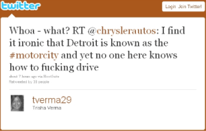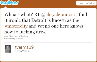 • Chrysler (“Imported from Detroit”) on driving in the Motor City (via MediaBistro):
