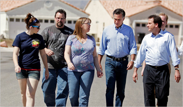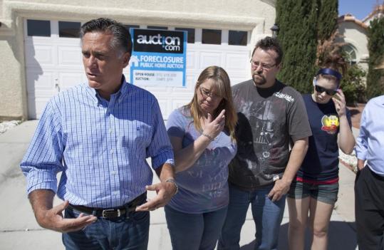 On Friday, he toured a depressed neighborhood lined with foreclosed homes as he continued trying to criticize Obama’s handling of the economy.