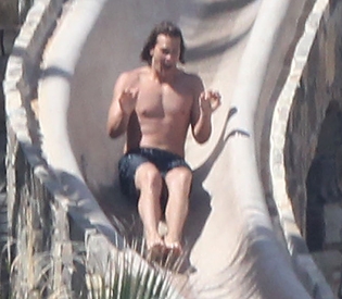 Wwwwwweeeeeeeeee! New England Patriots [team stats] QB/QT Tom Brady[stats] scored some alone time with his beauteous bikini-clad Brazilian bride Gisele Bundchen in Los Cabos, Mexico, over the weekend. And what better way for the couple to bond than to bomb down the frigid water slide at their hotel’s pool? No. 12 looks rather, um, shocked, no?