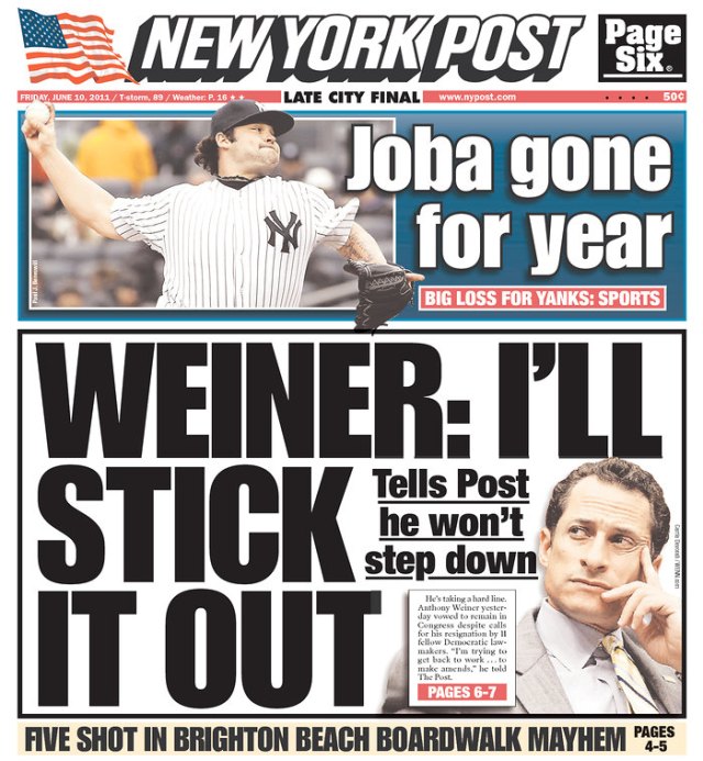 And then there were two: Weiner front-coverage, er, shrinking.