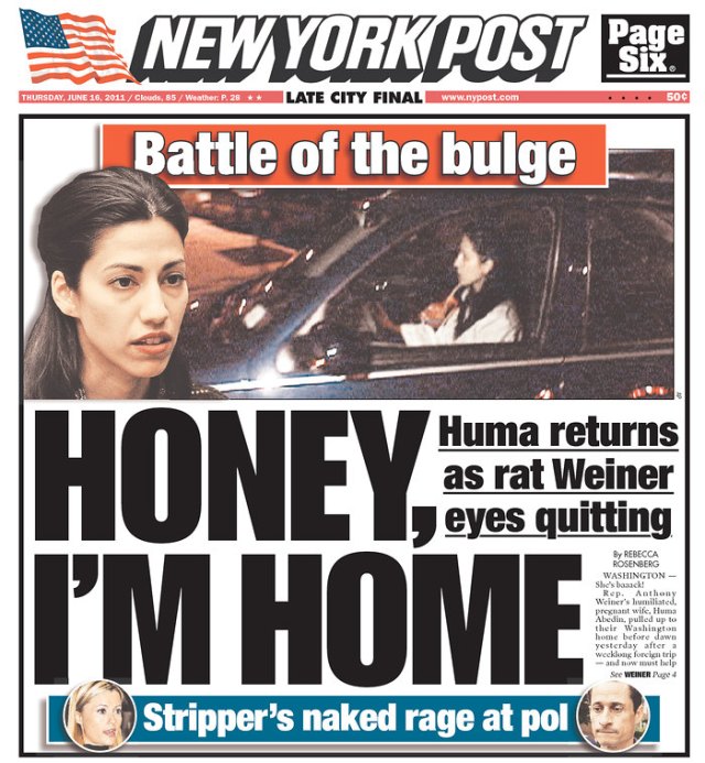 Mostly quiet on the dead-tree front, with only today’s Post roasting the Weiner: