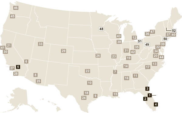 Boston/Cambridge/Quincy was least dangerous. Graphic here and here: