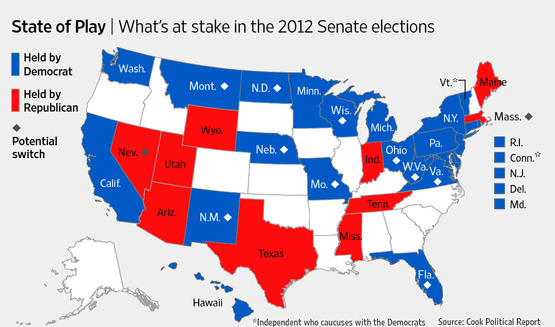 The political arithmetic for 2012 shows what Democrats are up against. Republicans would need to gain just four Senate seats to win a majority.
