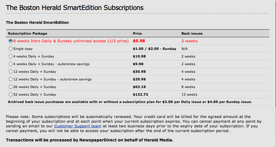 • Exact replica of the Boston Herald print edition delivered to the electronic device of your choice every morning