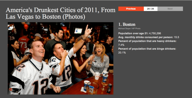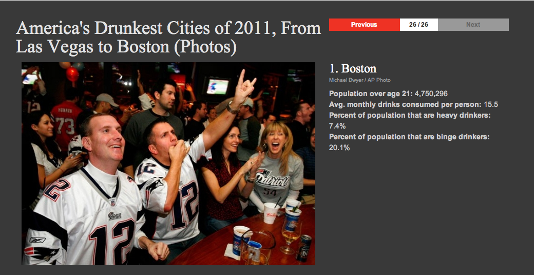 No more inferiority complex for Bostonians – The Daily Beast has issued its 2011 list of America’s Drunkest Cities, and Boston is the tightest of them all.