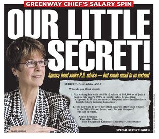 For the past few days, the Boston Herald has been blowtorching the Rose Fitzgerald Kennedy Greenway Conservancy over its excessive executive salaries and obsessive lack of transparaency.