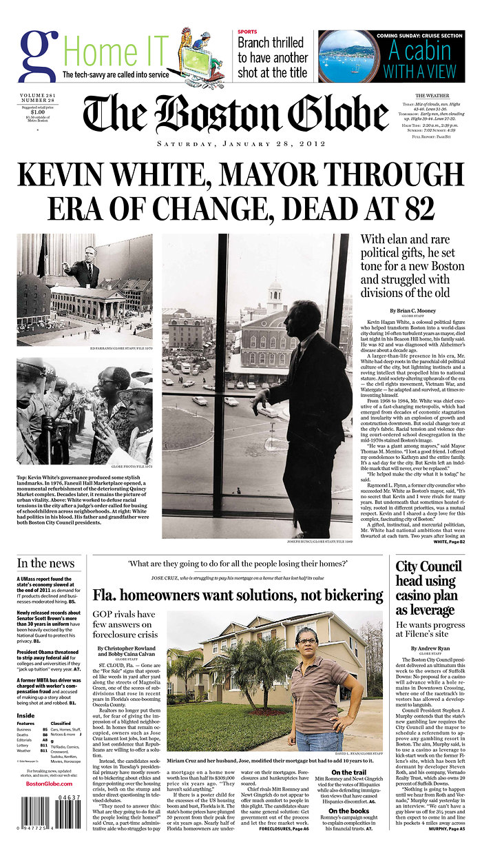 The first edition had a headline reading, “White to Challenge Menino Next Year”.