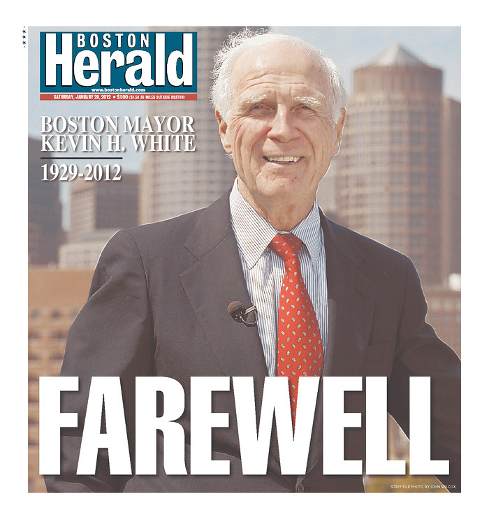 The respective front pages of the Herald and the Globe on the death of legendary Boston Mayor Kevin White: