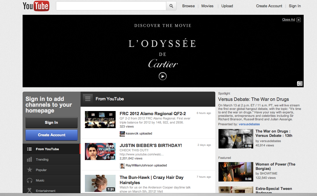 The Cartier epic was also featured on YouTube’s homepage: