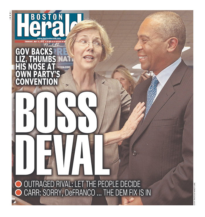 Thursday’s local dailies had very different takes on Gov. Deval Patrick’s decision to endorse Elizabeth Warren (D-CherOKee) in the Massachusetts Democratic primary for U.S. Senate.