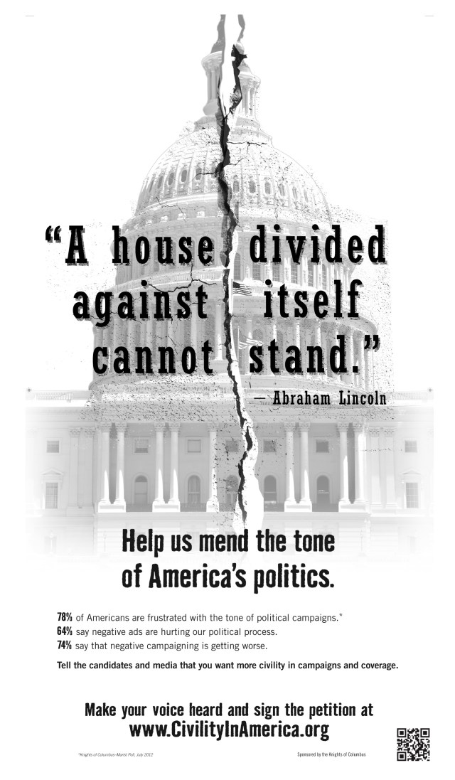 Yesterday the Knights of Columbus ran this full-page ad in the Wall Street Journal as part of its Civility in America campaign: