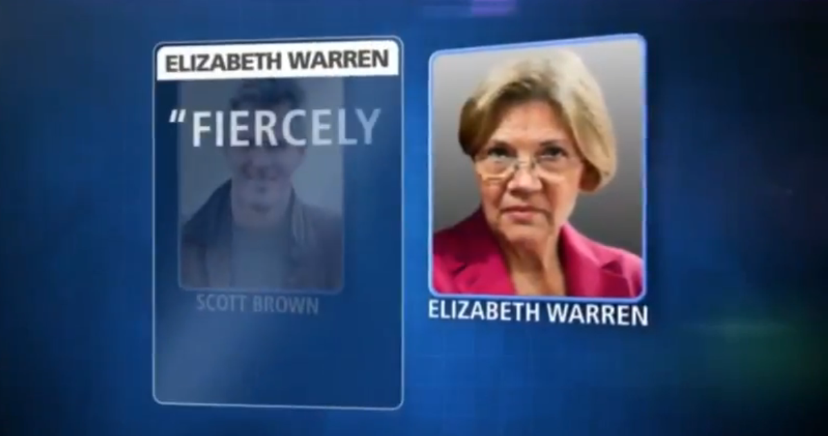 Not surprisingly, the spot features the Most Unflattering Photo of Elizabeth Warren Ever: