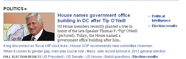 So Tip O’Neill is getting a government building in DC named after him. From Boston Globe reporter Glen Johnson’s Political Intelligence column: