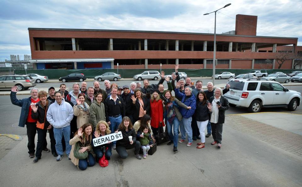 Some of the Boston Herald staffers got together yesterday at the feisty local tabloid’s former South End headquarters to kiss the old dump goodbye. It’s slated for the wrecking ball this week, so about 30 current and former staffers gathered and reminisced at what was once known asWingo Square, named after the incessant numbers games the Herald ran back in the ’80s to goose circulation.