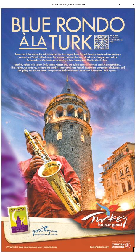 Rumor has it that during his visit to Istanbul, the Jazz legend Dave Brubeck heard a street musician playing a mesmerizing Turkish folkloric tune. The unusual rhythm of the song stirred up his imagination, and the Ambassador of Cool ends up composing a Jazz masterpiece: Blue Rondo à la Turk . . .