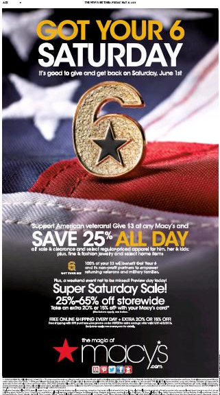 Support American veterans! Give $3 at any Macy’s and