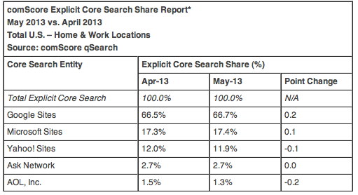 The Microsoft search engine, which got a megabucks launch but totally failed in its effort to be verbed, has now bumped up against the Google ceiling, as this comScore ranking illustrates: