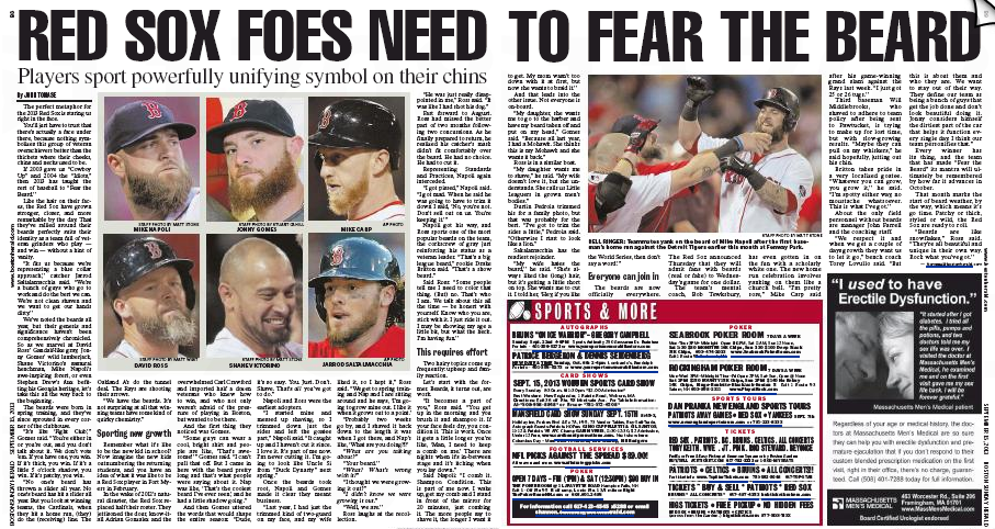 Consider this instead: The New York Times beat the Boston Herald on the quintessential Red Sox story of this season.