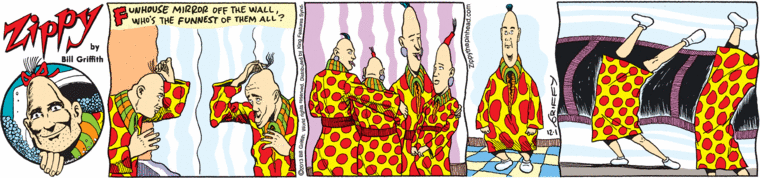 Wow, it’s really the Higher Power behind Zippy! I am so sad, I’ve just written to the Globe, pointing out that it says something about how they view the intelligence levels of their readers by dumping Zippy and keeping the beyond tiring Family Circus. Not to mention that ridiculous strip with the poorly drawn idiot dogs that isn’t remotely funny.