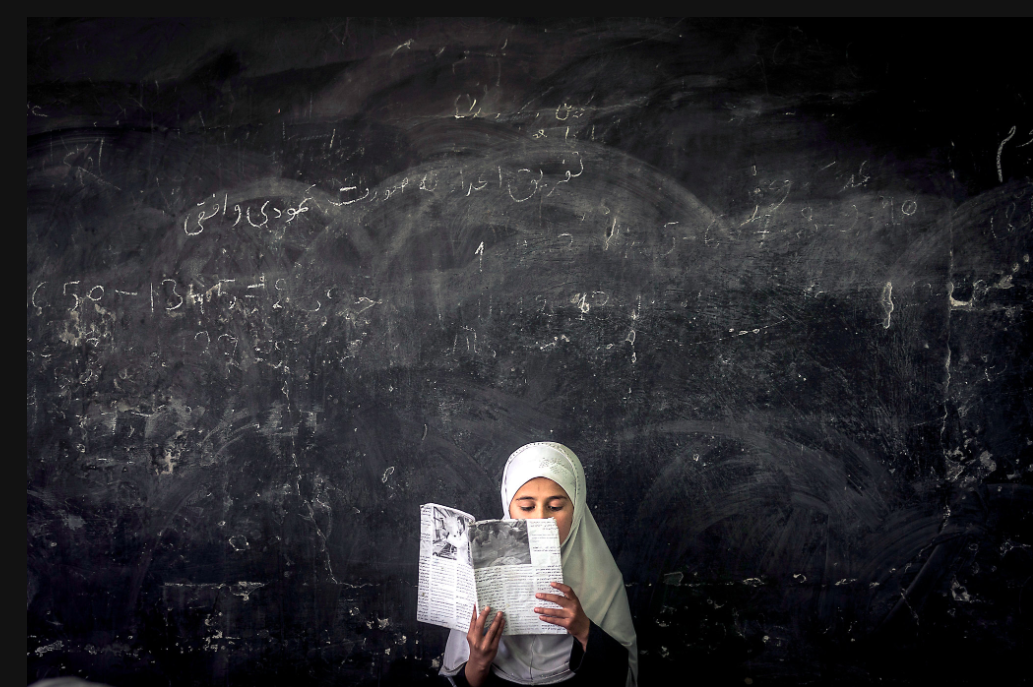 Caption: “A girl read in front of her class at Mir Ali Ahmad Girls School.”