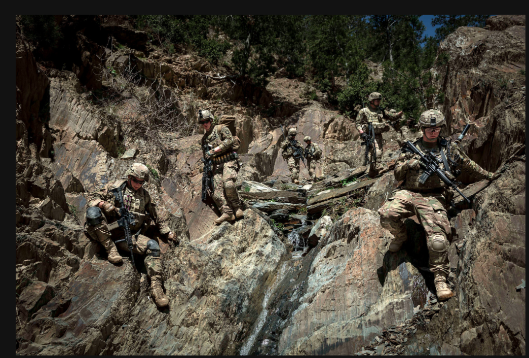 Caption: “The Third Brigade Combat Team of the 101st Airborne Division, known as the Rakkasans, climbed down from the mountains.”