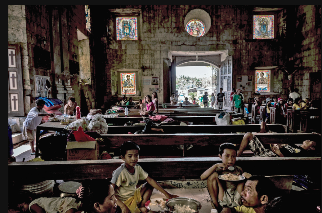 Caption: “After Typhoon Haiyan, people found refuge at Saint Michael the Archangel Church in Basey.”