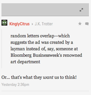 Last month – after we tried several times to contact the Appreciative New Yorkers, to no avail – the hardworking staff asked Did Michael Bloomberg Pay For A NYT Ad Praising Michael Bloomberg? and, a week later, Did Michael Bloomberg Run Another NYT Ad Praising Michael Bloomberg?