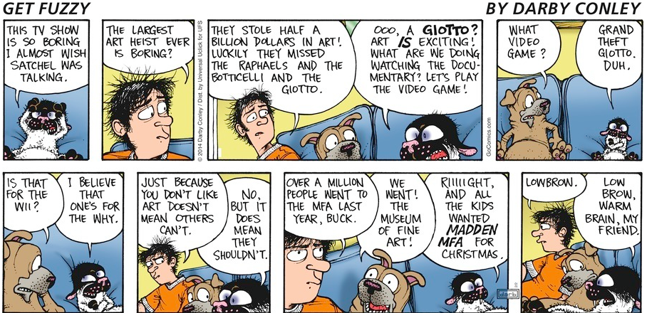You were featured in a Get Fuzzy comic strip in the 2/2/14 Boston Sunday Globe, as we noted here.