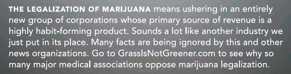 This full-page ad opposing marijuana legalization appeared in Saturday’s New York Times: