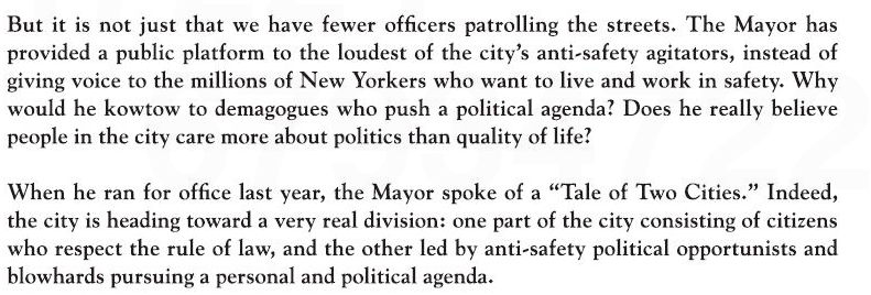 This might not be all-out mutiny by the NYPD, but when the cops are willing to drop six figures on a Times ad, that’s not nothin’.