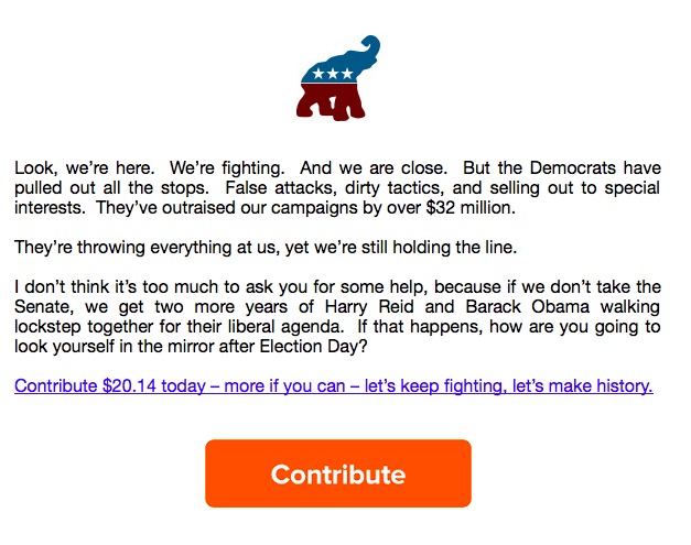 Next up: the National Republican Senatorial Committee. Subject line: How will you look yourself in the mirror?