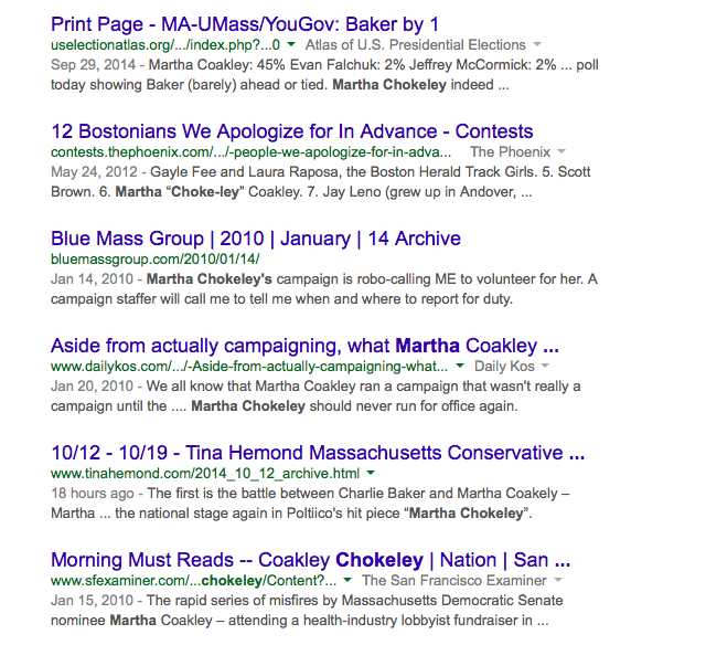 Meanwhile, plug “Martha Chokeley” into the Googletron and you get 660 search results, including: