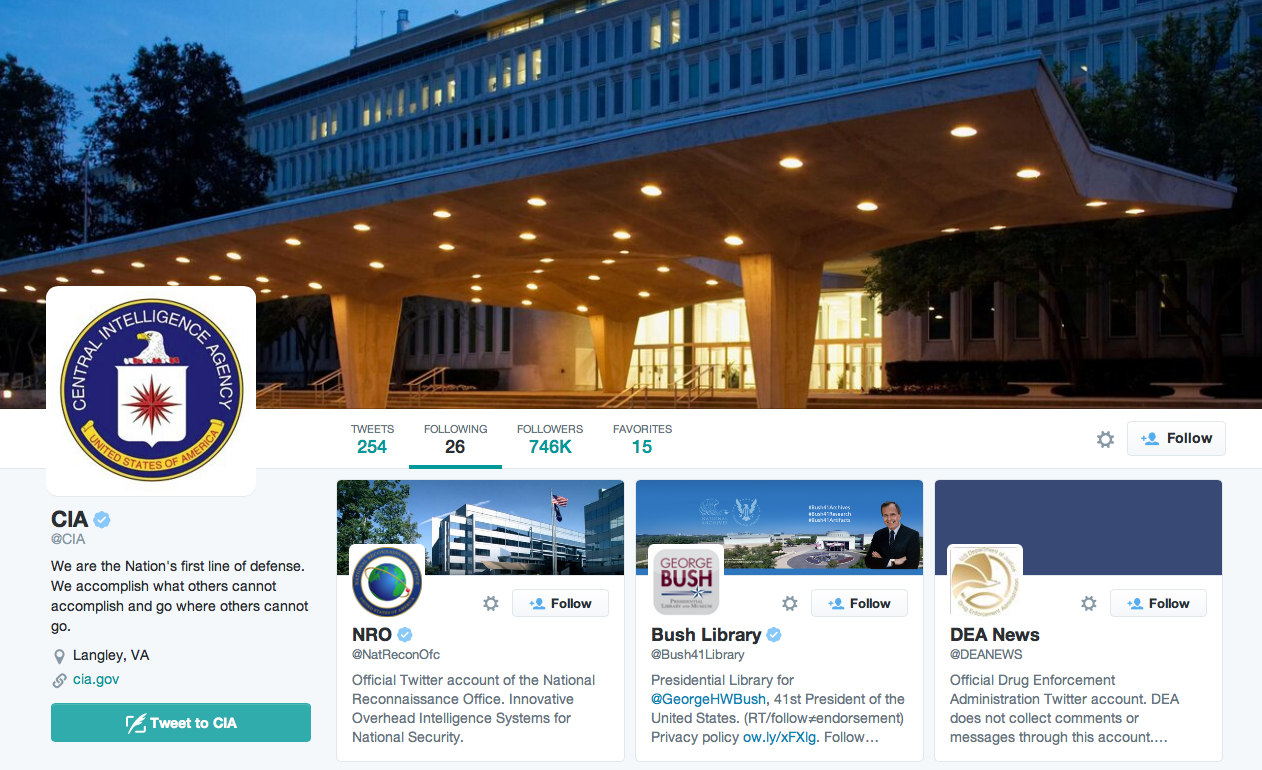 The Central Intelligence Agency is using Twitter to gather intelligence from these 26 feeds: