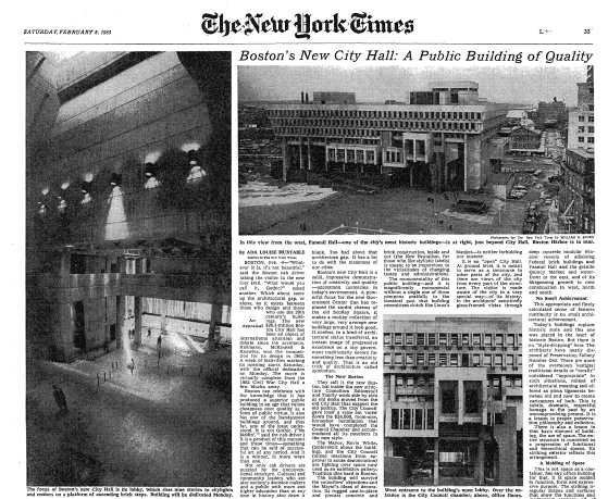 Ada Louise Huxtable, who loved the new Boston City Hall when it opened in 1969, is not yet turning over in her grave.