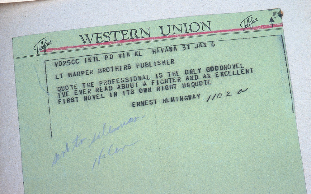 Ward’s piece also mentions Heinz’s Death of a Racehorse (via Alex Belth’s Bronx Banter), which has “often been called one of the greatest sports columns ever published,” and features the classic Ernest Hemingway telegram about Heinz’s boxing novel, The Professional.