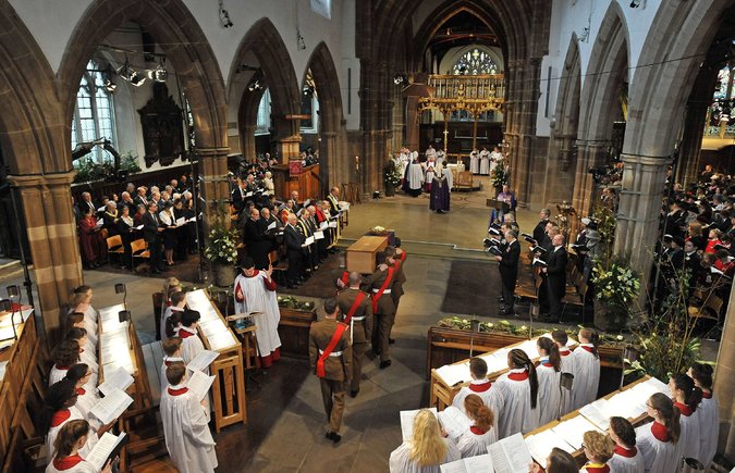 LEICESTER, England — For an English monarchy that has lasted more than 1,000 years, there can have been few more improbable occasions than the ceremony of remembrance here on Thursday for the reburial of one of the most bloodstained medieval sovereigns, King Richard III, who was slain in battle seven years before Christopher Columbus set sail for the New World.