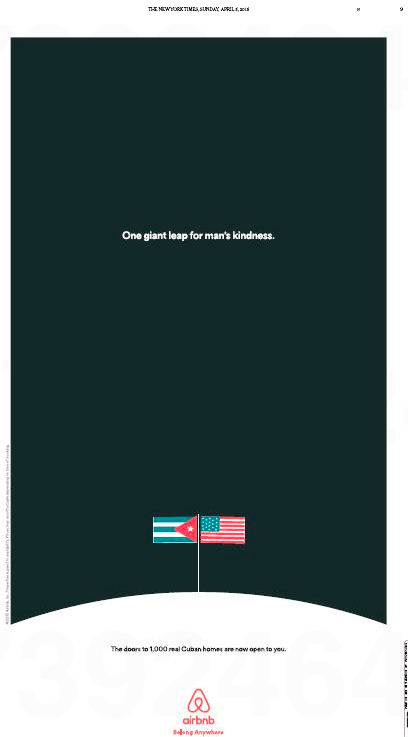 An early entrant is Airbnb, which ran this ad in yesterday’s New York Times:
