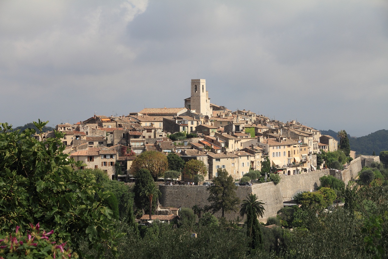 Waiting for the 2:22 #400 bus back to Cagnes-sur-Mer, we see drivers continually stop on a curve in the road to take photos like this one of Saint-Paul-de-Vence high off in the distance.