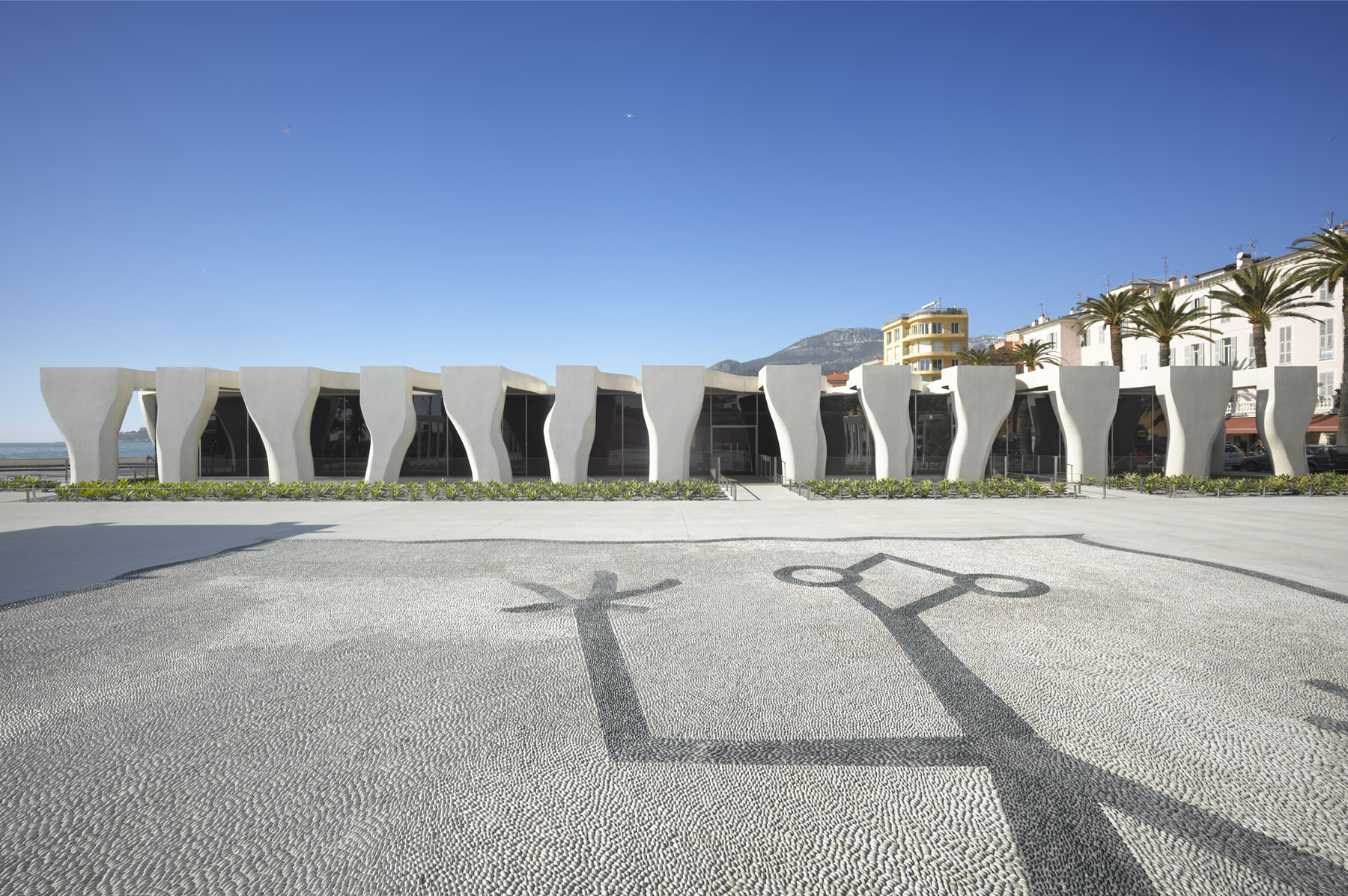 “The Town Hall struck me as rather unsympathetic. I needed to play tricks with it, to try to adapt the style of the turn of the century on the Riviera, with its villas mostly now gone, painted with sheaths of iris, algae and heads of waving hair. Such was my point of departure, from whick I was carried far at the command of that “other self” wich dictates what we must do.”