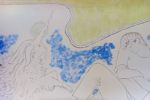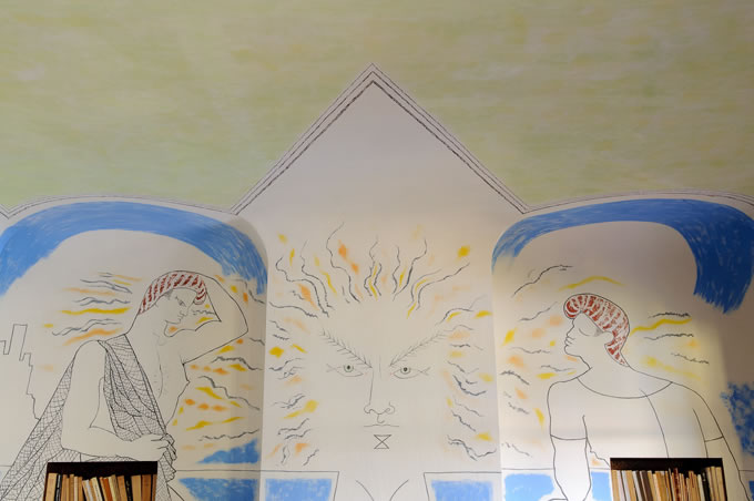 The villa Santo Sospir, built shortly after the war, was bought by Alec and Francine in 1946. Used as a holiday home, the walls of the villa remained empty. A few days after his arrival, Jean Cocteau say: “idleness tired … I myself dry. “. He asked if he could draw Francine charcoal head of Apollo above the living room fireplace. Little by little, he tattooed frescoed the walls of the house. Matisse had said: “When we decorate a wall the other is decorated, he was right.” Cocteau also said: “Picasso opened and closed all doors, left to paint on doors, that’s what I tried to do. But the doors open in the rooms, the rooms have walls and if the doors are painted the walls look empty … “