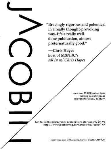 In the wake of the revolution/evolution at The New Republic last year, the hardworking staff has noted the Potemkin quality of the magazine, which is to say no advertising.