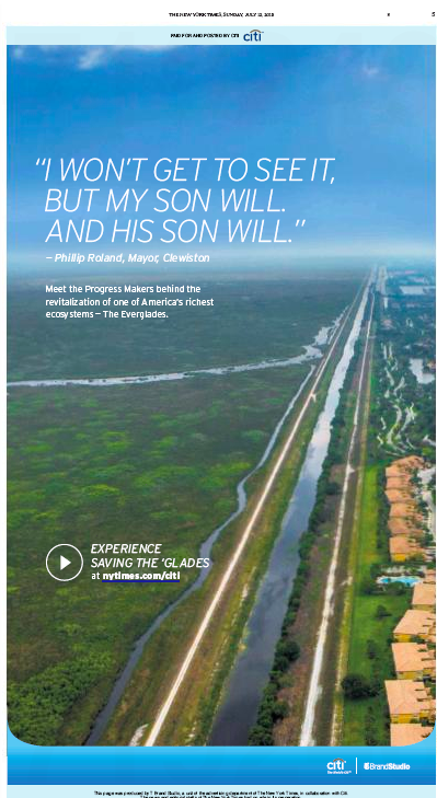That full-page ad in the Sunday Times promoted this native ad for Citi called ”The Progress Makers.” (Ironic, no? Classic case of schlimbesserung – to make worse by trying to improve.)