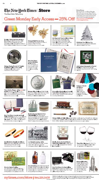 Not to mention the additional four-page Times Store insert and the four-page New York Times Wine Club insert – neither of which was included in the Times Replica edition of Sunday’s paper.