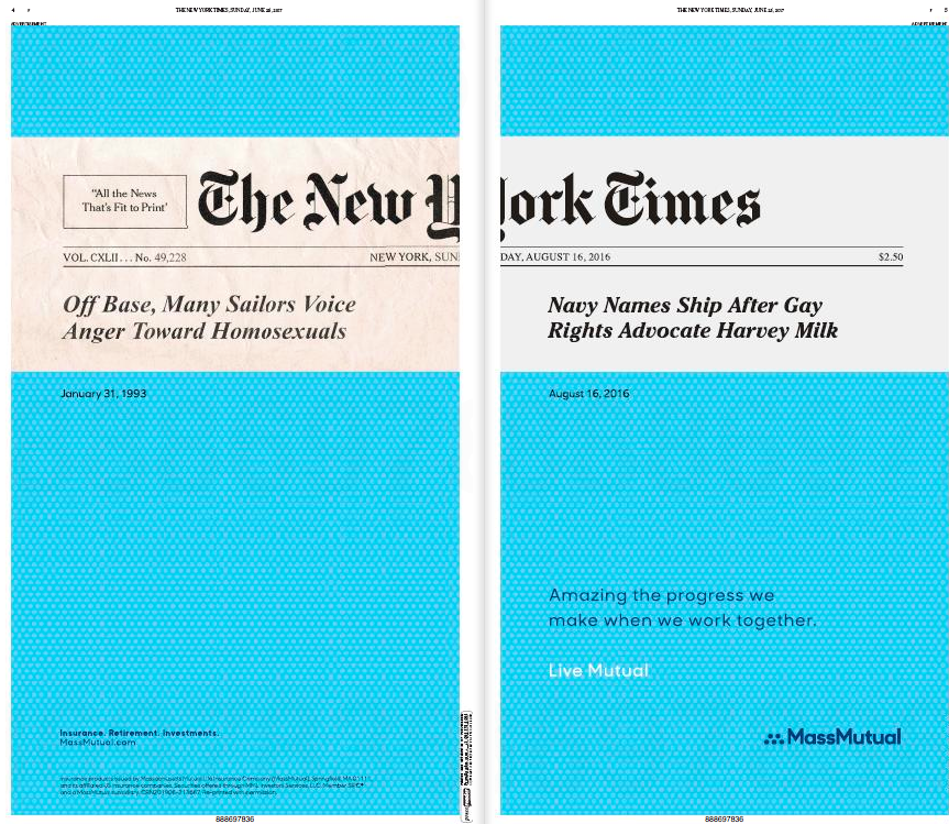 Start with this two-page spread in the Sunday New York Times Pride 2017 Special Section.
