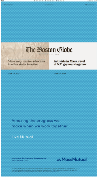 That Mass Mutual ad was mirrored in the Boston Sunday Globe A section.