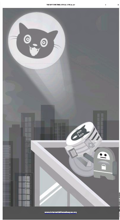 Today, Private Internet Access is shining the cat signal with a full page ad in the New York Times to gain support for the Net Neutrality Day of Action on July 12th that Fight for the Future and other organizations are planning at Battle for the Net.