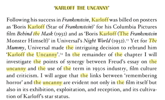 Full disclosure: The Missus and I didn’t get the whole “Karloff the Uncanny” thing, which seemed to surface in the early ’30s and disappear around 1935. This 1933 New York Times movie review isn’t all that enlightening, but this Google Books link to After Dracula: The 1930s Horror Film by Alsion Peirse is more helpful (if a bit oblique).